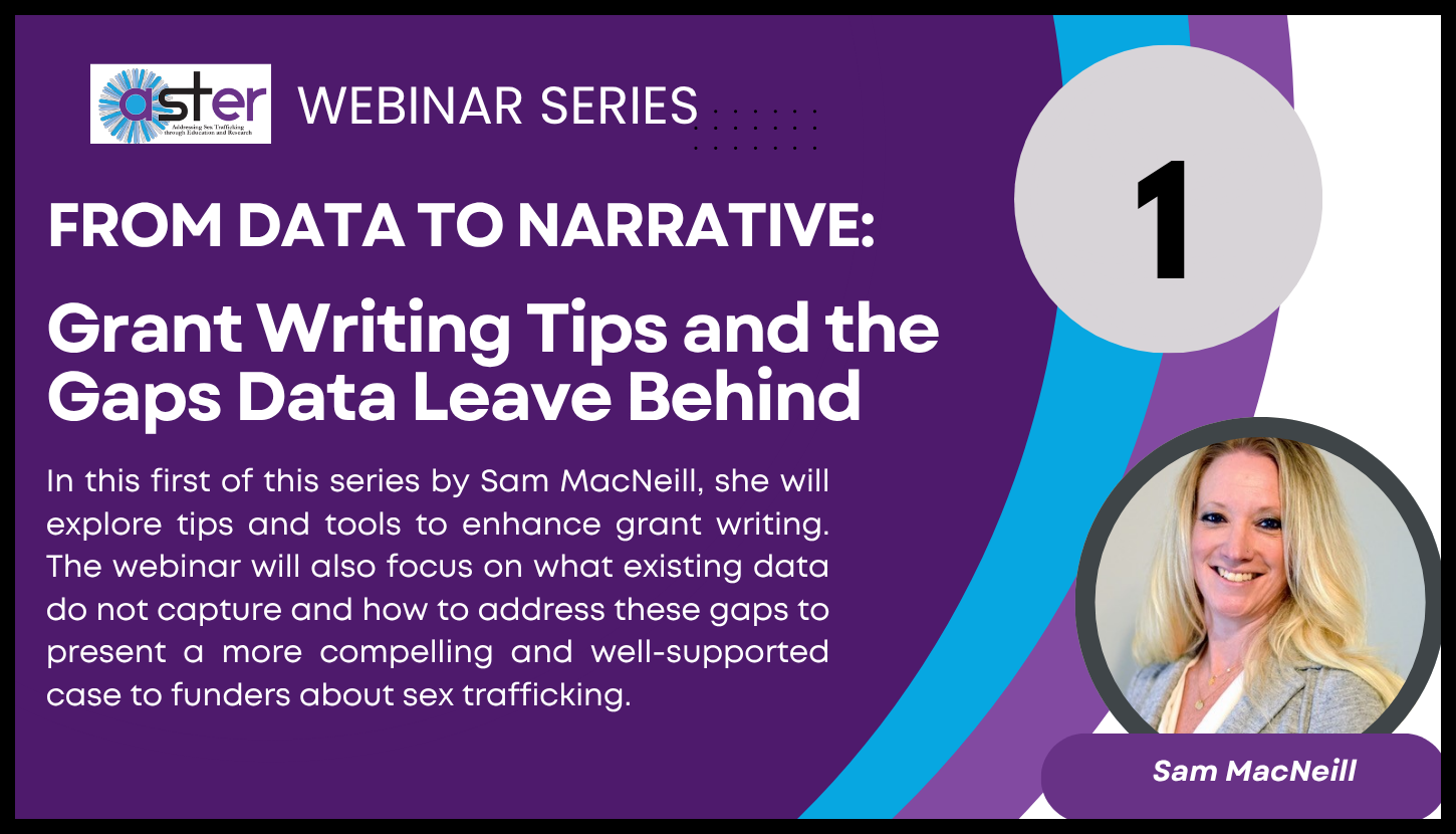 Trainings From data to narrative: Grant writing tips and the gaps data leave behind The invisible becoming visible: Response to vulnerable populations at-risk of sex trafficking Sex trafficking victims & survivors: Building confidence on approaches to care Trauma and violence informed approaches to human trafficking: A critical reflection workbook for service providers